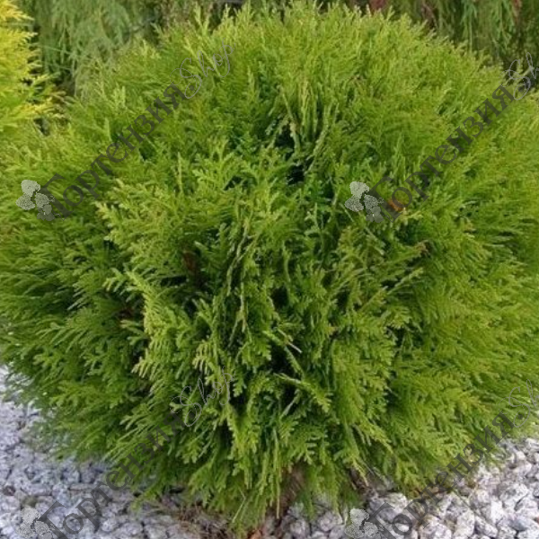 Туя западная 'Хозери'- карликовый, вечнозелёный кустарник шаровидной формы. Высота взрослого растения 80 см, диаметром до 1,0 м. Годовой прирост 5-10 см. Хвоя чешуйчатая, темно-зеленая, к зиме с бронзовым оттенком. Зимостойка. Солнцелюбива. Предпочитает плодородные, суглинистые почвы, хорошо переносит стрижку. На зиму крону желательно связывать, создавая укрытие.