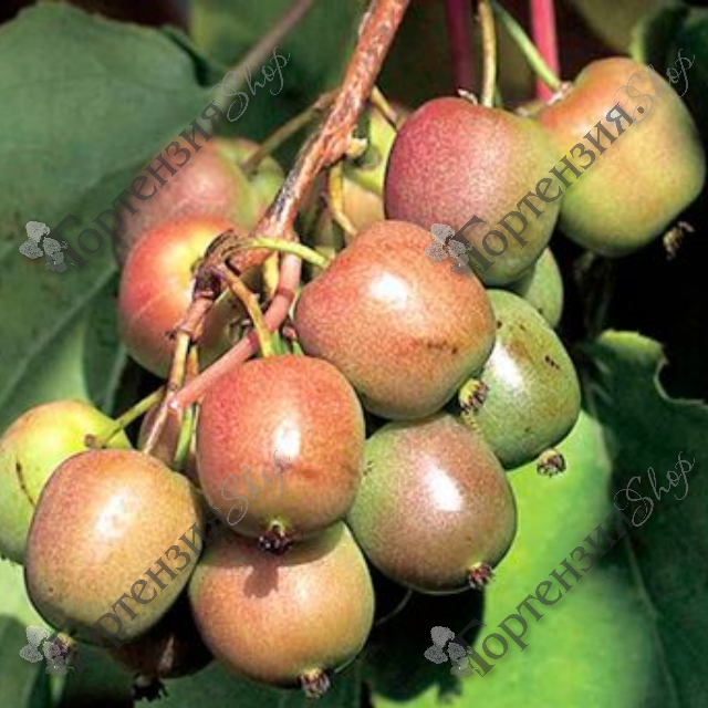 Актинидия аргута в контейнере Р9  (объем 0,5 литра) в ассортименте– одна из самых высоких представительниц рода актинидия. Это многолетняя лиана, ежегодный прирост которой достигает 2-3 м, а длина побегов – до 7 м. Цветки актинидии аргута небольшие, белые или зеленовато-белые, ароматные, собраны в щитковидные соцветия. Плоды актинидии аргута — это маленькие, гладкие, сладкие плоды с прекрасным ароматом, съедобные ягоды, похожие на миниатюрные киви весом 9-12 гр. Они имеют зеленую или красноватую кожицу и сочную, сладкую мякоть с мелкими черными семенами. Плоды обычно созревают в конце лета или начале осени. Растение двудомное, то есть имеет мужские и женские цветки на разных растениях. Для плодоношения необходимо наличие как мужских, так и женских экземпляров. Кроме того, следует помнить, что эта лиана очень красиво цветёт – с приятным, сладким ароматом.  Это съедобный фрукт размером с ягоду или виноград, похожий на киви по вкусу и внешнему виду, но зелёного, коричневатого или фиолетового цвета с гладкой кожицей, иногда с красными пятнами. Актинидия аргута ценится за свои вкусные плоды и декоративные качества. Она относительно неприхотлива в выращивании, предпочитает солнечные или полутенистые места и хорошо дренированную почву. Растению требуется опора, такая как беседка, пергола или стена. В ландшафтном дизайне актинидию аргута используют для озеленения стен, беседок и других вертикальных конструкций. Высокая морозостойкость (до -30°C). Раннее плодоношение (на 3-4 год после посадки).