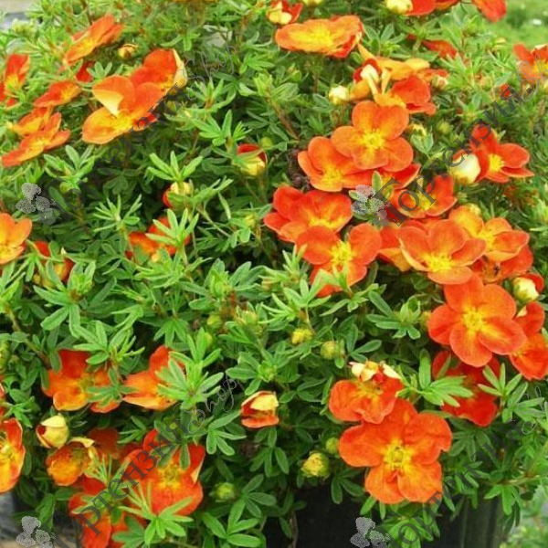 Лапчатка кустарниковая 'Оранж Стар' Potentilla fruticosa 'Orange Star' - многолетний, красивоцветущий кустарник высотой до 60 см, с плотной,компактной, подушковидной кроной. Листья небольшие, ажурные, зеленые. Окраска цветков яркая, оранжевая. Диаметром 4 см. Они могут быть, как одиночные, так и собранные в небольшие соцветия. Цветет с июня по октябрь.Зимостойкий.Хорошо переносит обрезку.