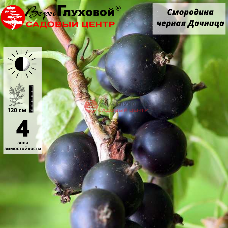 Цветки средние, бледные, чашелистики средние с бледной окраской, отогнуты кверху.Ягоды крупные (2,2 г), округло-овальные, почти черные, кожица тонкая, сладкого (4,7 балла), нежного вкуса, универсального назначения. Чашечка полуоткрытая, плодоножка средняя, буро-зеленая. Химический состав: растворимые сухие вещества - 12,1%, сумма сахаров - 9,3%, титруемая кислотность -2,1%, аскорбиновая кислота - 193,6 мг/100 г, антоцианы - 103,8 мг/100 г, лейкоантоцианы - 190,1 мг/100 г, катехины - 221,6 мг/100 г, сумма Р-актив-ных веществ - 515,5 мг/100 г.Сорт зимостойкий, скороплодный, самоплодный (71%), устойчив к мучнистой росе и почковому клещу, средняя урожайность 9,0 т/га (1,4 кг/куст), преимущественно кольчаточный тип плодоношения.Достоинства сорта: крупноплодность, высокие вкусовые качества ягод, устойчивость к мучнистой росе и почковому клещу, ранний срок созревания.